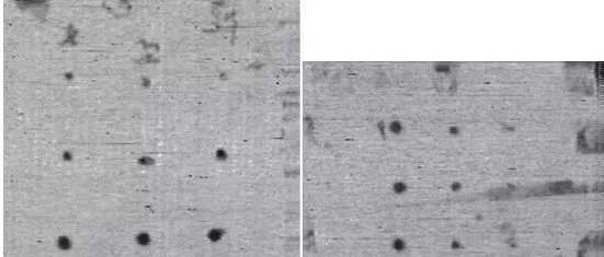北航設(shè)計(jì)了一套空氣耦合超聲檢測系統(tǒng),并用此系統(tǒng)檢測了蜂窩夾芯復(fù)合材料,制備預(yù)埋缺陷的紙蜂窩夾芯復(fù)合材料結(jié)構(gòu)試樣如圖所示。試樣蒙皮厚度約為1mm、蜂窩芯厚度約為10mm。蜂窩夾芯復(fù)合材料試樣的空氣耦合超聲C掃描圖像,其中缺陷特征清晰可辨,驗(yàn)證了空氣耦合超聲檢測技術(shù)應(yīng)用于蜂窩夾芯復(fù)合材料脫粘檢測的可行性。