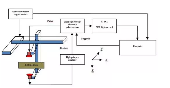 a.空氣耦合超聲波C掃描成像系統(tǒng)PC和超聲波脈沖發(fā)生器接收機(jī)系統(tǒng);b.X-Y掃描儀