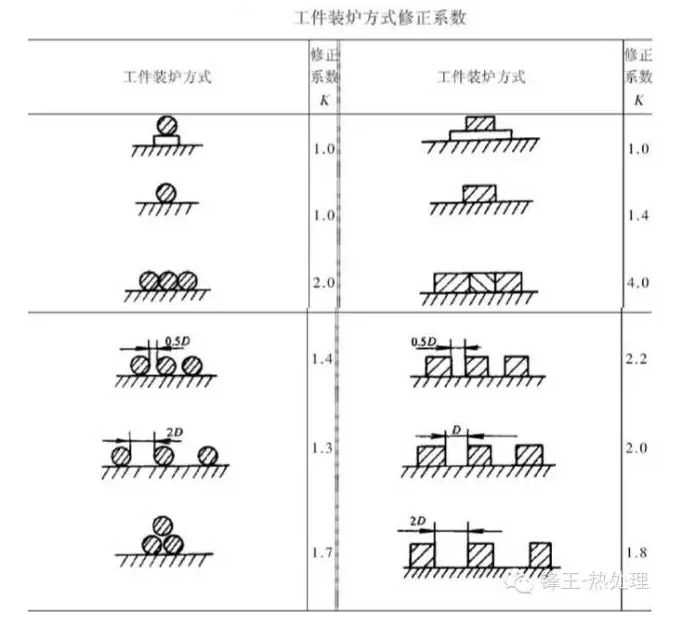 傳統(tǒng)的碳素鋼淬火加熱時間的計算公式:T=K?αD