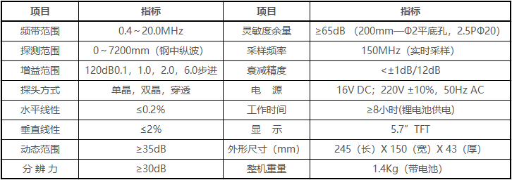 - 缺陷回波參數(shù)(距離、垂直、水平、波幅、dB或當量孔徑值)實時顯示;多次波探測缺陷的實際深度可直接顯示。